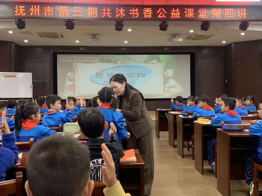 2025年10月25日上午,抚州市“共沐书香”阅读指导公益课堂第四讲《愿望的实现》导读课在市图书馆报告厅三楼开讲。抚州市实验学校黄淑琴老师化身为探险家,将孩子们带入了印度文学巨匠泰戈尔的经典世界——《愿望的实现》。