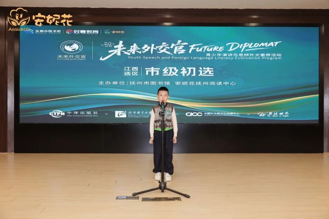 据了解,2026年度(暨第九届)“未来外交官”青少年演讲与思辨外文素养活动抚州市级初选由中译出版社、北京语言大学出版社、中国外文局文化传播中心、《英语世界》杂志社等单位联合指导,抚州市图书馆、安妮花抚州阅读中心联合主办。活动旨在尊重世界文明多样性的基础上,促进中国和“一带一路”沿线国家教育领域交流合作,讲好中国故事、传递中国声音,提高孩子们的国际理解力和思辨能力,培育其成为真正具备中国素养、国际视野的“未来外交官”!