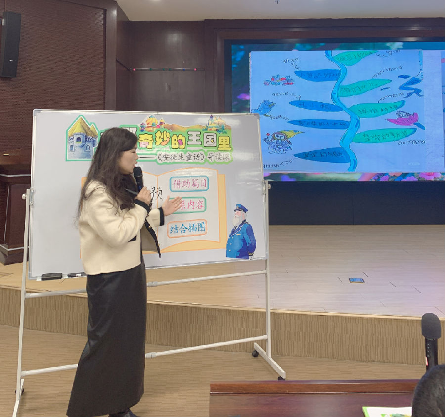 本次活动特邀嘉宾为抚州市骨干教师丁玲,以“乘童话列车,探安徒生奇境”为主题,通过创设“奇妙王国号”魔法列车情境、设计预测情节妙招等趣味活动,让孩子们化身童话小探险家,成功解锁阅读安徒生童话的三大法宝,揭开童话王国的神秘面纱。