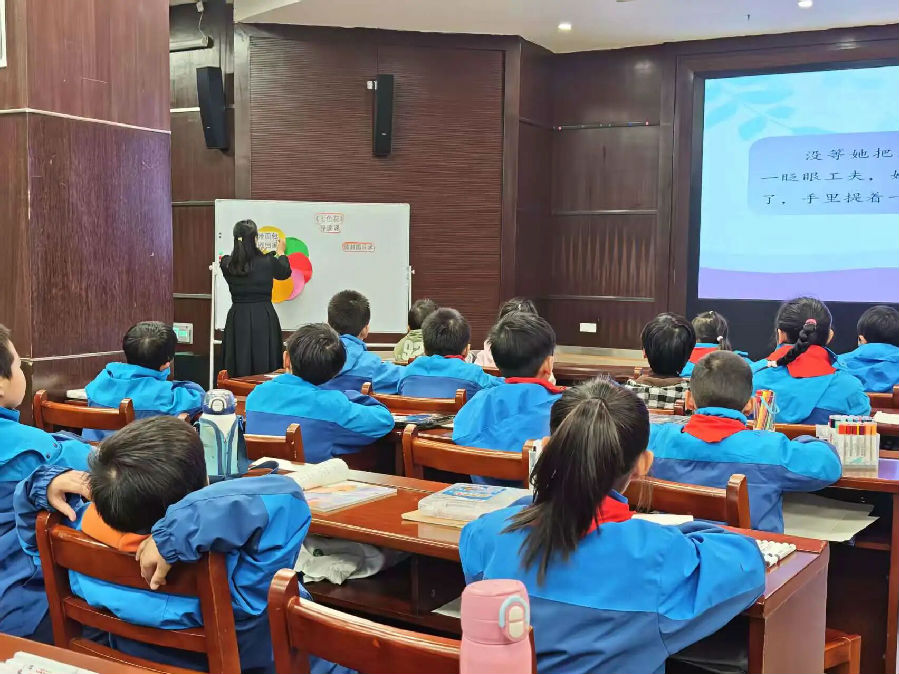 这堂课没有生硬的灌输,却处处蕴藏教学巧思。课堂上,王玉娟老师俯身倾听每个孩子的“童话梦”,对每一个天马行空的设想都给予鼓励回应,让学生真正站在阅读的C位。在她的引导下,孩子们不仅读懂了《七色花》里的善良与成长,更学会了在童话中寻找生活的微光,用想象为心灵插上翅膀。